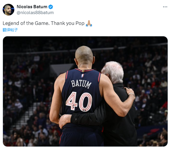 快船球员巴图姆表示:传奇,谢谢你波波。